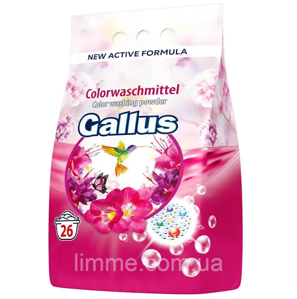 Пральний порошок для кольорової білизни Gallus Color концентрат 1.7 кг - пральний безфосфатний порошок Gallus Vollwaschmittel (концентрат) з новою формулою. Порошок універсальний, його можна застосовувати для всіх видів тканин, і білих і кольорових. Gallus - виведе ідеально будь-які плями, при цьому білизна не втратить своїх властивостей, якість кольору і міцність. Пере в діапозоні температур від 30 до 95 градусів. Gallus гіпоалергенний, а це значить він не принесе шкоди вашій шкірі .Пральний порошок Gallus у своєму складі має активний кисень, який сприяє чудовій якості прання і надає Вашим речам аромату свіжості. Не містить фосфати, тому безалергенний та абсолютно безпечний.