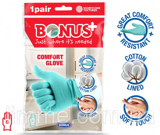 Гумові рукавички підвищеної комфортності для господарських робіт BONUS + Comfort - із внутрішнім напиленням бавовни.
